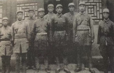 二区队攻占通州新集后合影:前左三总支书记尉彰,左四政委谭志诚,后排右一特派员曹海炳